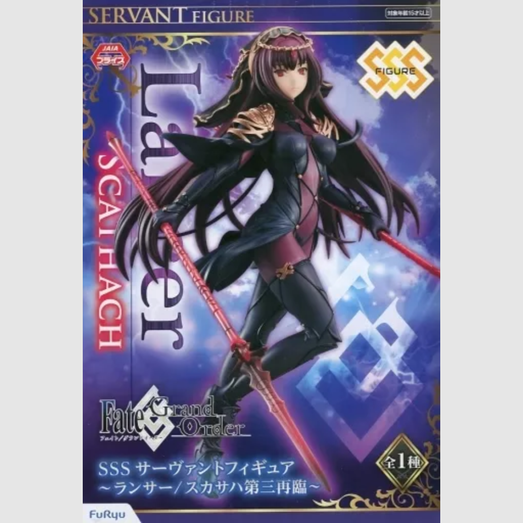 The Fate/Grand Order Lancer Scathach Third Ascension SSS Servant Figure by FuRyu is a PVC collectible that captures the formidable warrior in her Third Ascension form. Part of FuRyu's Super Special Series (SSS), this non-articulated figure showcases Scathach's intricate armor and dynamic pose, making it a standout addition for fans of the Fate/Grand Order series.