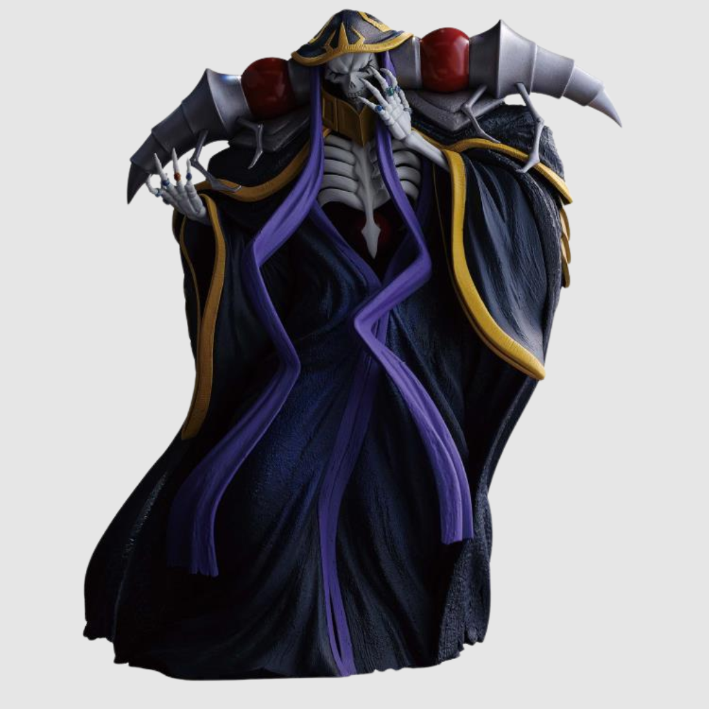 The Banpresto Overlord Ainz Ooal Gown Figure is a meticulously crafted PVC statue that captures the imposing presence of the Supreme King of the Dead from the Overlord series. This non-articulated figure showcases Ainz in his iconic pose, complete with detailed robes and skeletal features. It's an officially licensed product, ensuring authenticity and quality for collectors.